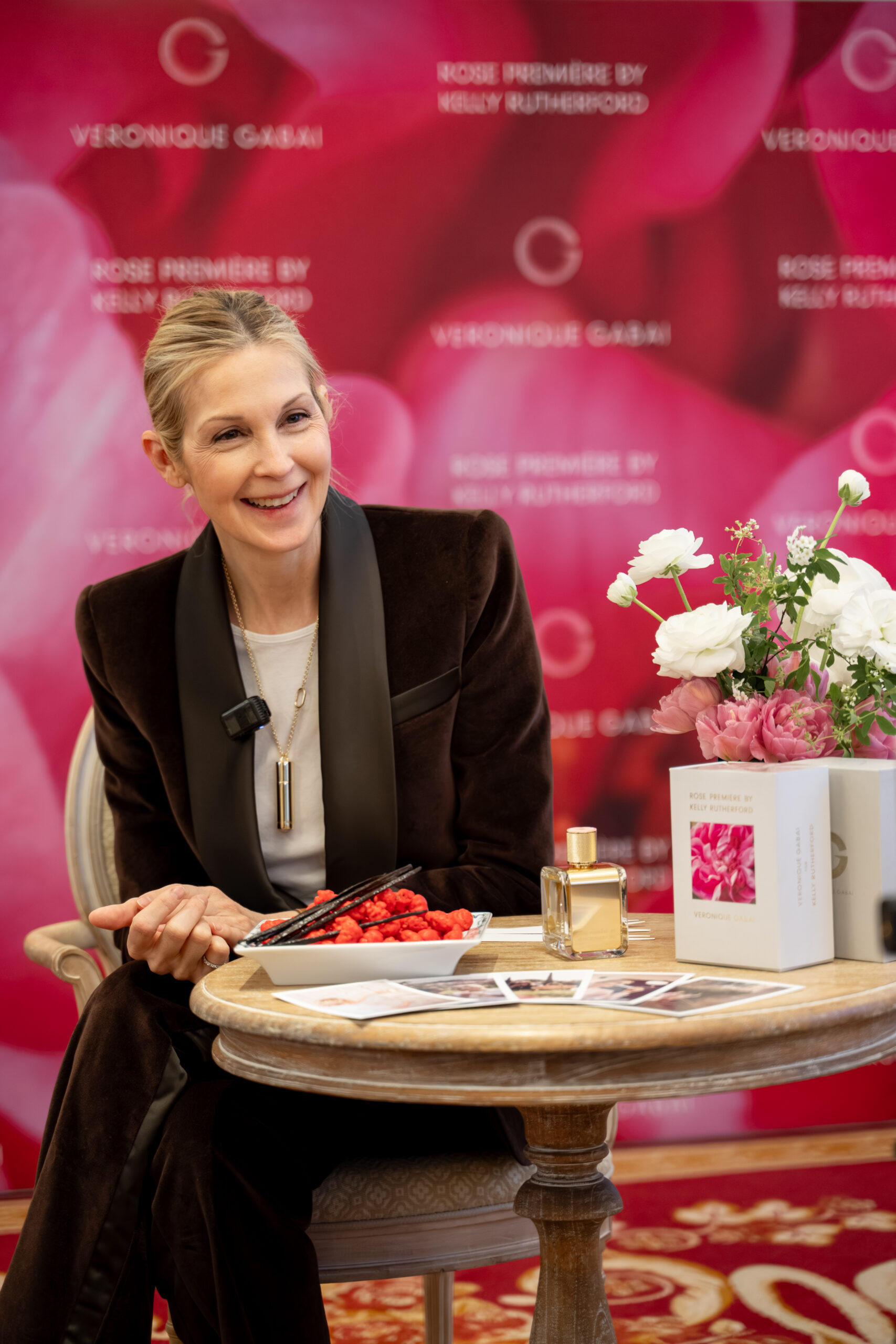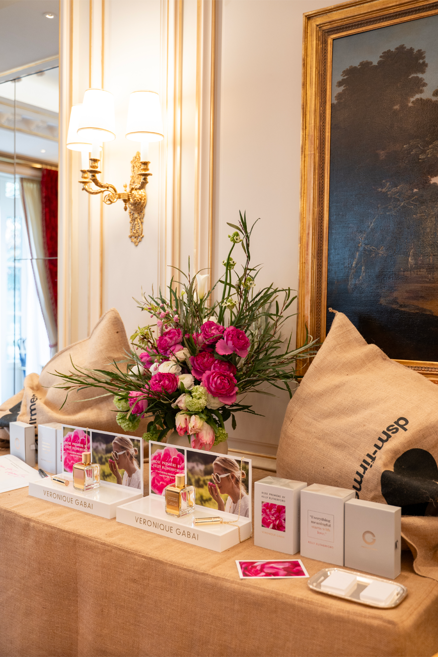 À son image, Veronique Gabai souhaitait un événement tout en élégance et discrétion, mettant à l’honneur les choses simples : son amitié avec Kelly Rutherford, la rose de Grasse et les beaux ingrédients, la création de la fragrance en collaboration avec le parfumeur Fabrice Pellegrin (dsm-firmenich).